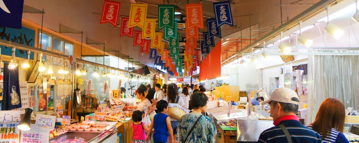 新鮮な魚介類や海産物が手に入る活気あふれる市場