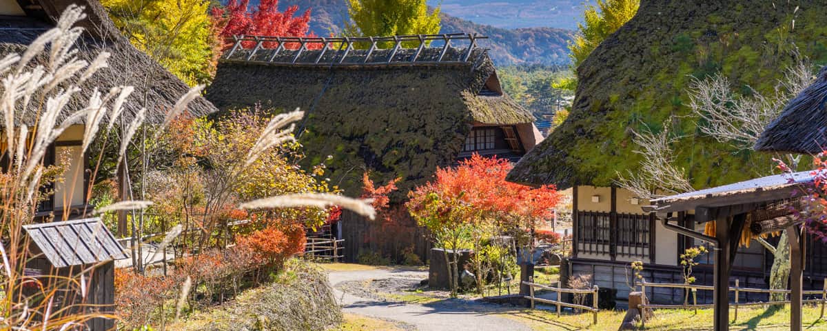 富士を望む風光明美な里に並ぶ茅葺き集落で、食事や手作り体験を。