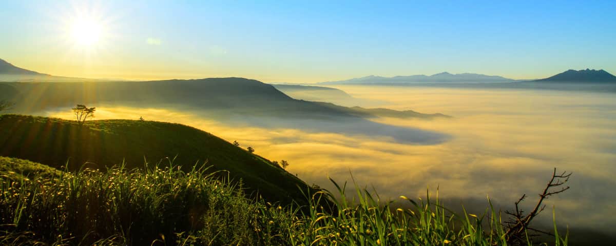 涅槃像の姿をした阿蘇五岳を望む、最高のビューポイント