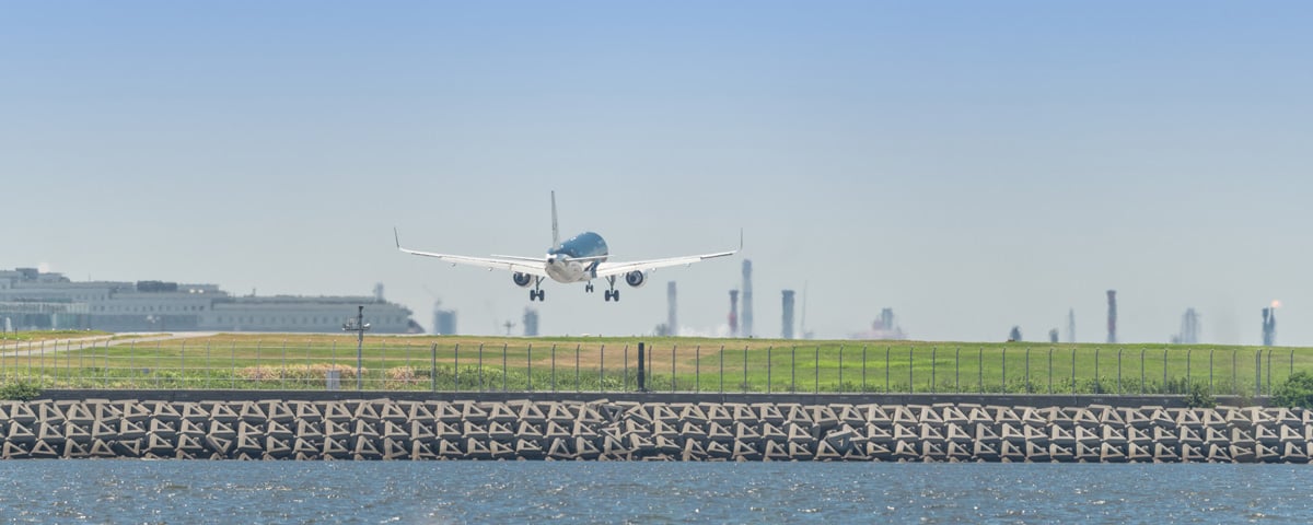 Beach by Haneda Airport, popular for BBQs and plane-spotting