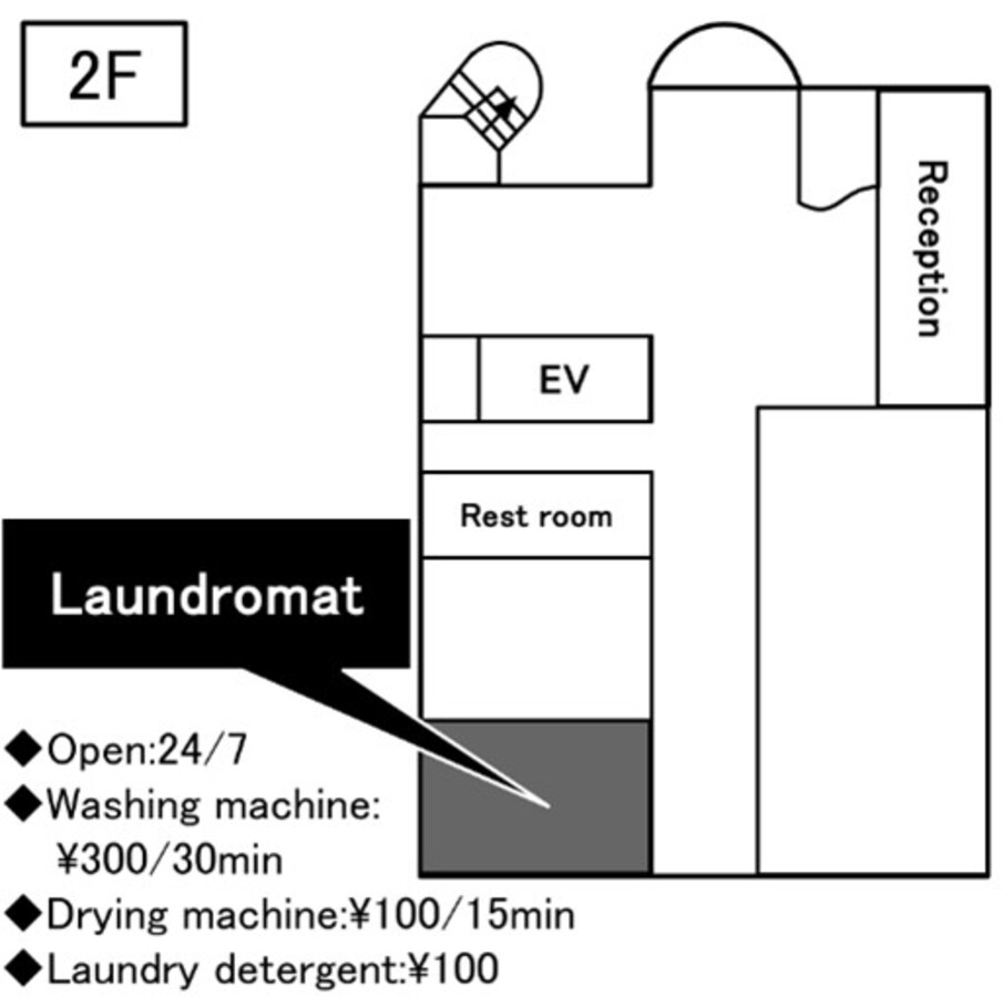 *The coin laundry only accepts 100 yen coins. If you need to exchange money, please contact the front desk.