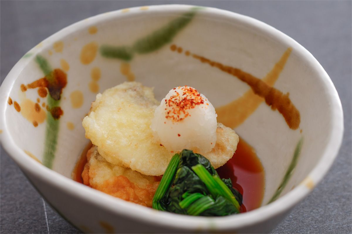 | oily foods | Deep-fried wild red sea bream from Ise Bay with ponzu sauce |