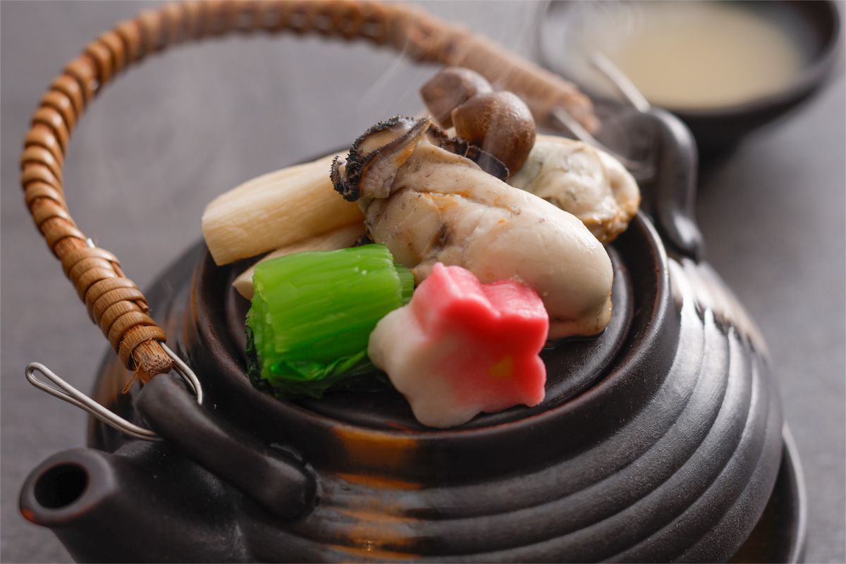 | Steamed food | Toba oysters in earthenware pot with sake lees |