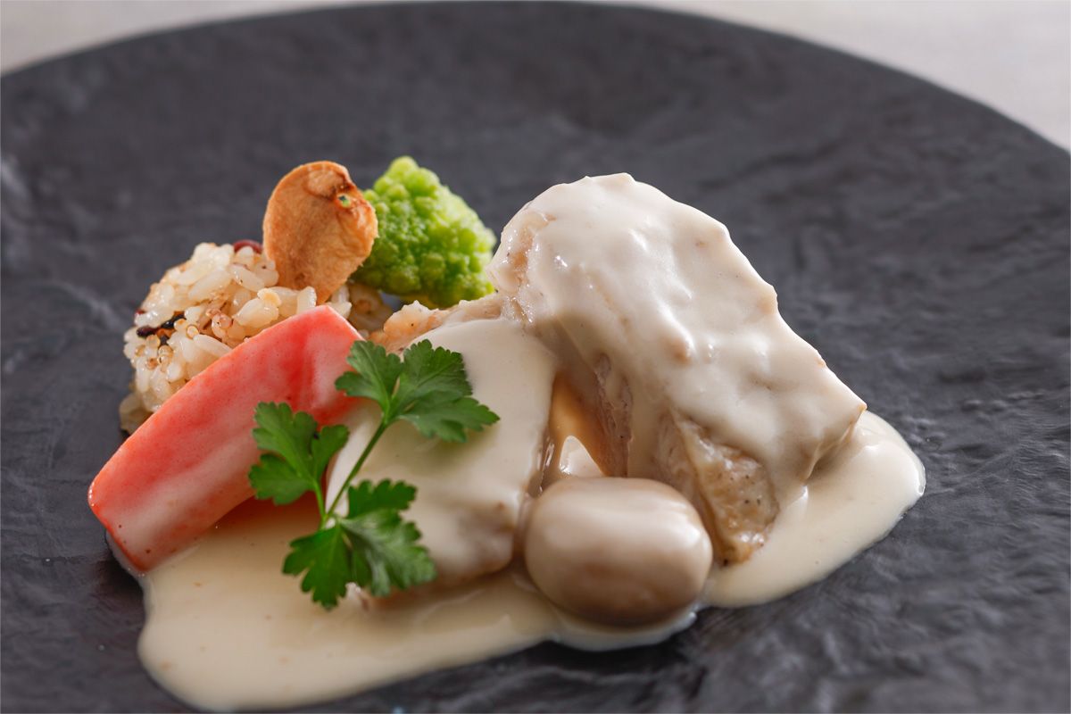 [Standard French Fleur] Light gratin of white fish served with oysters from Uramura -