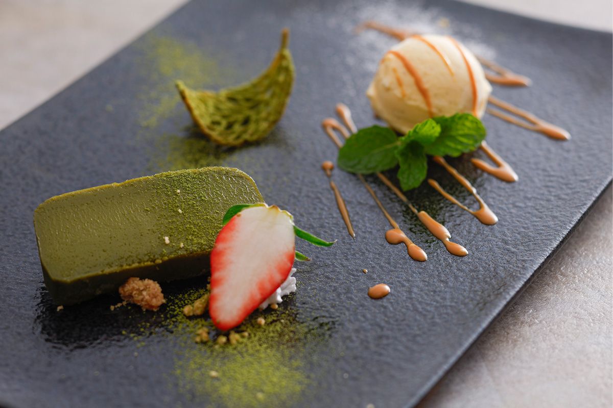 | sweetness | Unshu mandarin pudding with Ise tea sauce |