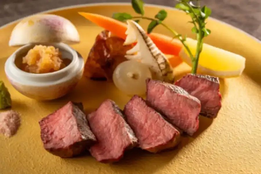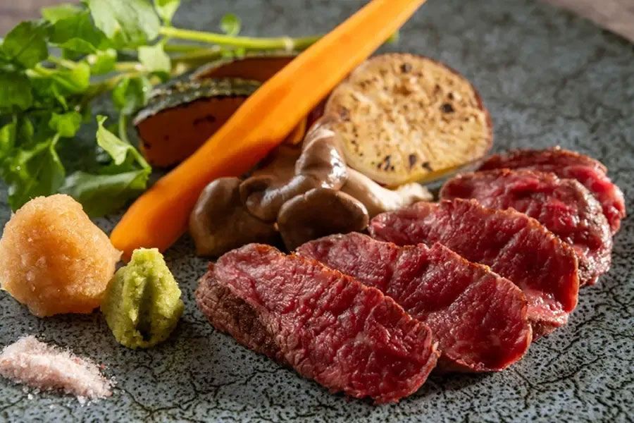 | meat dishes | A5 rank Nasu Kogen Wagyu fillet steak with hot vegetables, rock salt, wasabi Shiobara grated radish ponzu |