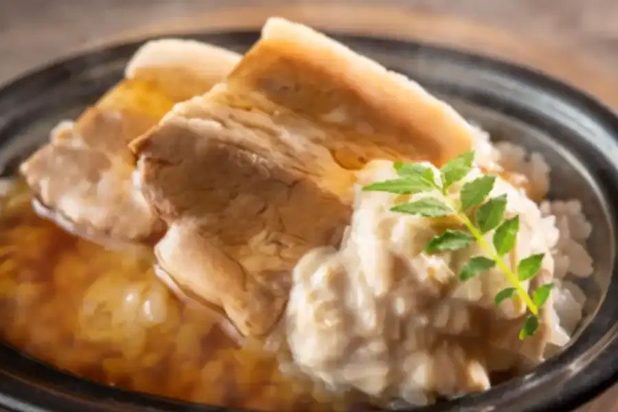 | Food | Nasu Gunji braised pork belly rice with thickened sauce, fresh yuba and kinome greens |