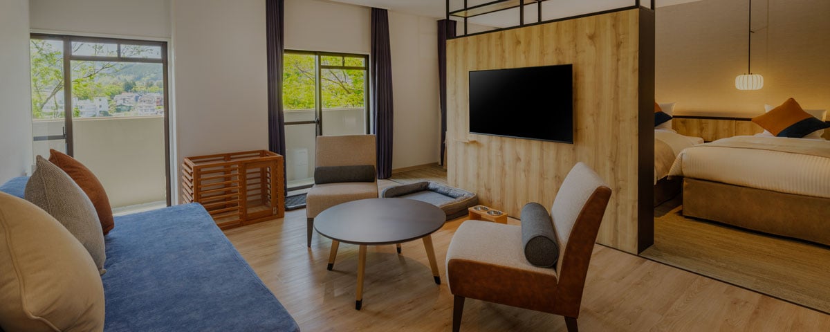 그 중에서도 주목은, 프라이빗 도그랑 첨부의 스위트.여행의 이동으로 피곤한 강아지도 마음껏 놀 수 있는 개방적인 공간으로, 주인님과 함께 휴식의 한때를 보낼 수 있습니다.게다가, 일부 객실 에는 프라이빗 드라이 사우나를 갖춘 객실도 있어, 심신 모두 치유되는 극상의 리트리트.