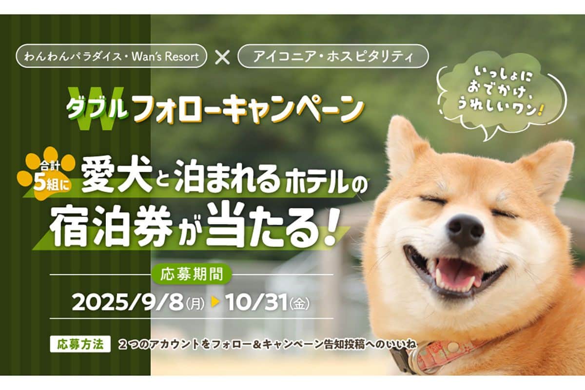 【わんわんパラダイス・Wan's Resort】愛犬と泊まれるホテルの宿泊券が当たる!ダブルフォローキャンペーン開催