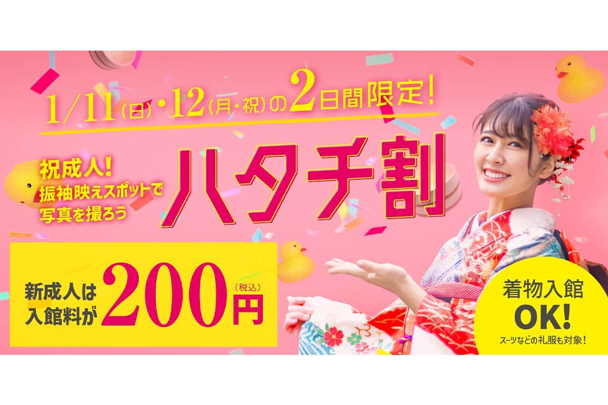 【空庭温泉 OSAKA BAY TOWER】祝・20歳!2026年1月11日(日)、12日(月・祝)2日間限定「ハタチ割」キャンペーン開催!新成人の皆さまへ、感謝と祝福を込めて入館料200円&着物入館OK。