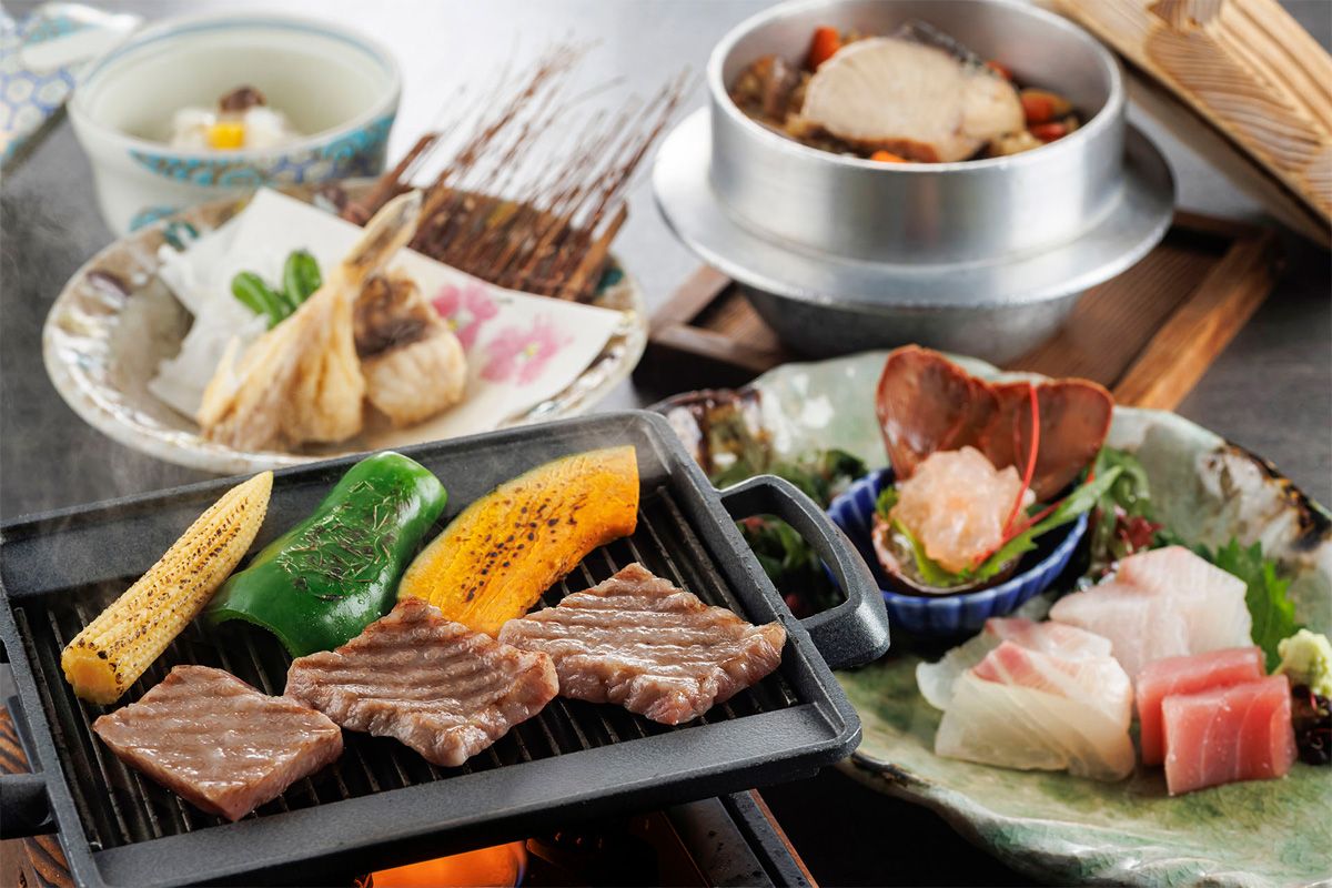 伊勢志摩の海の幸と松阪牛の鉄板焼きを揃えた和会席をご堪能ください。