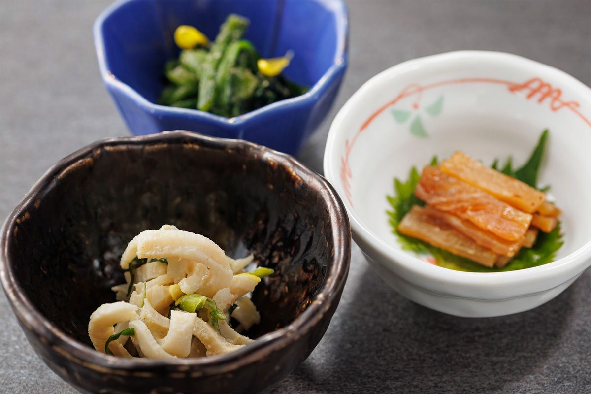 | 前菜 | マンボウ酢味噌 なばなのお浸し サメのたれ味醂干し |