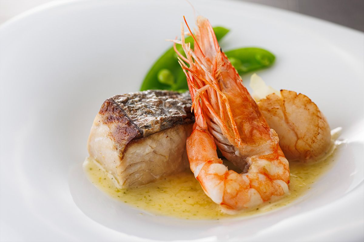 | Poisson | 鰆と天使の海老と帆立のポワレ 春キャベツのエチュベと共に 香草入りブールブランソース |