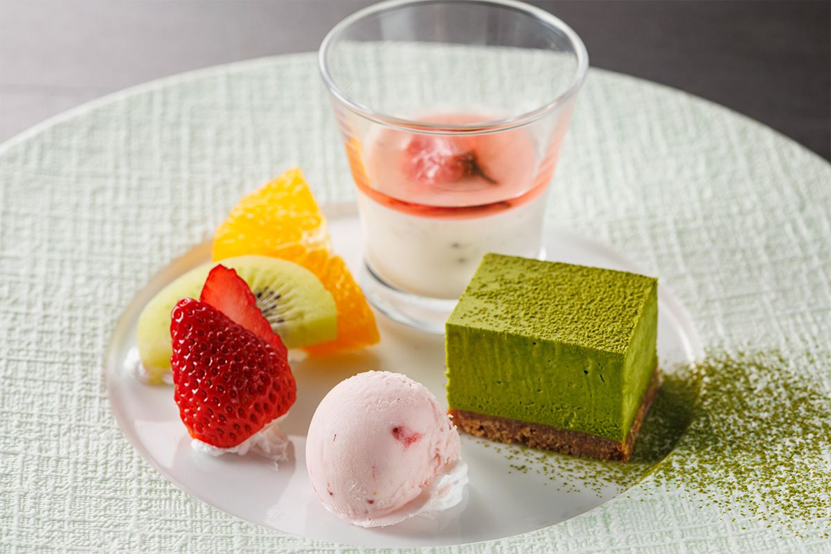 | Dessert | 桜風味のブランマンジェ 抹茶のガトー ストロベリーアイス |