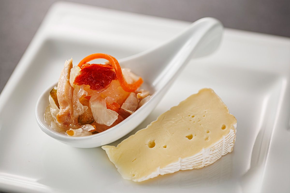 | Amuse bouche | 鶏とカブのマリネとイズニーカマンベール |